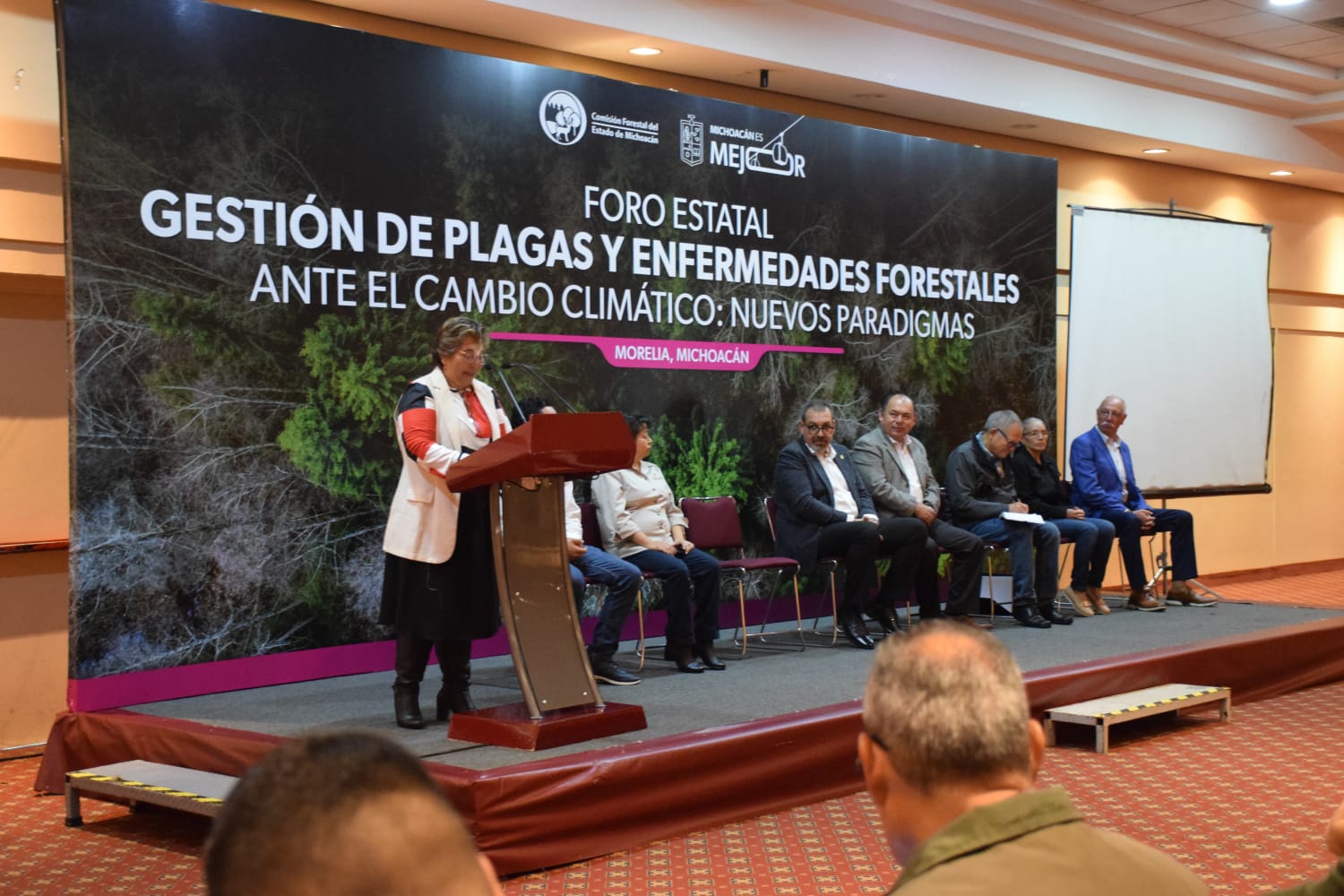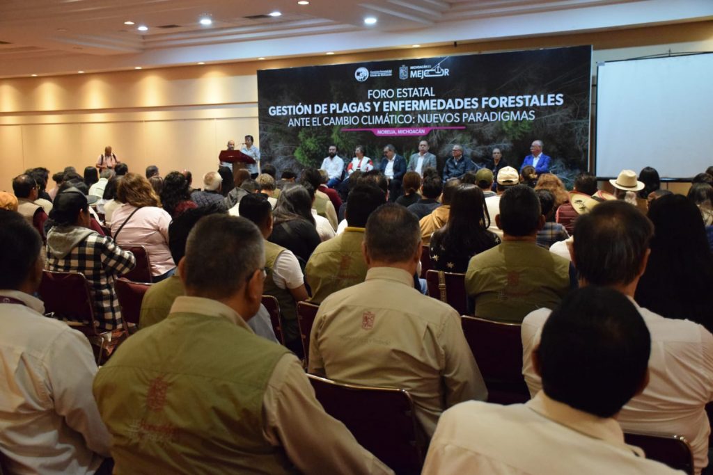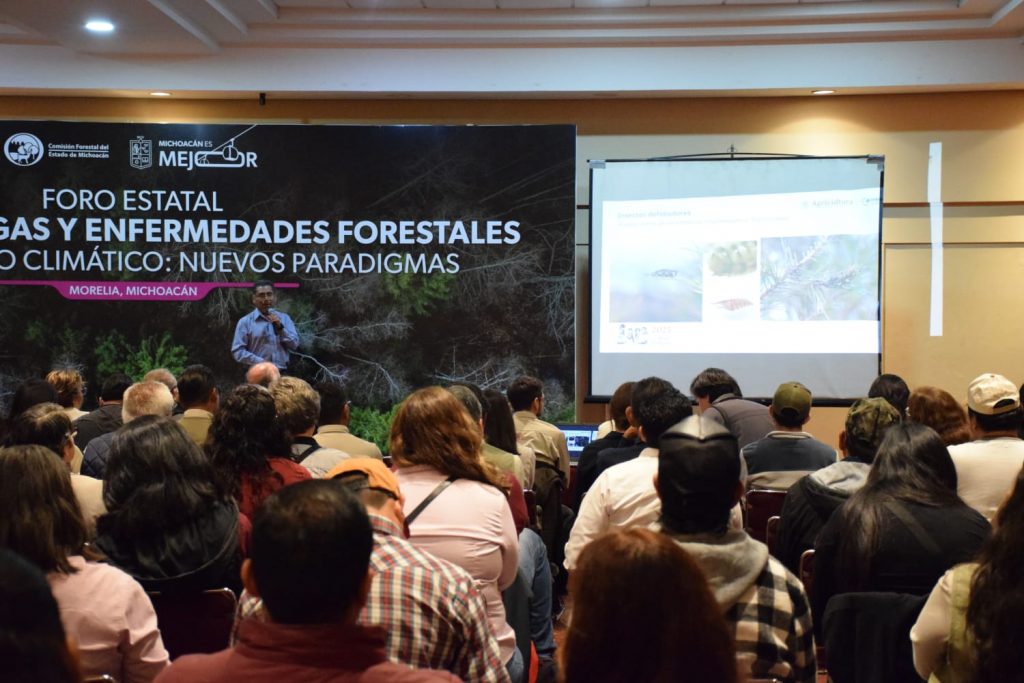 Morelia, Michoacán, 8 de octubre de 2025.- Para fortalecer el cuidado en sanidad forestal de los bosques, la Comisión Forestal del Estado (Cofom) lleva a cabo el Foro Estatal Gestión de Plagas y Enfermedades Forestales Ante el Cambio Climático.